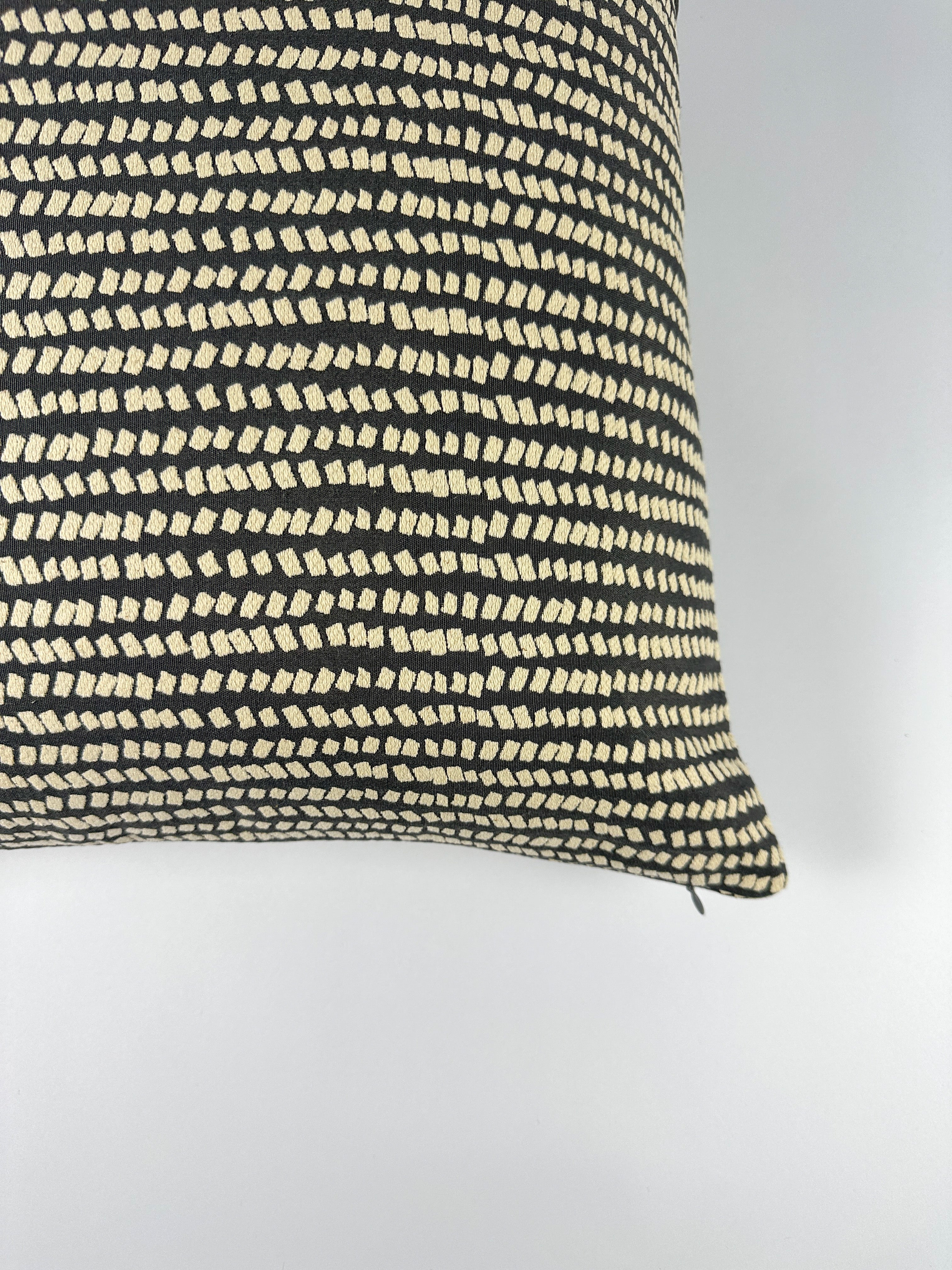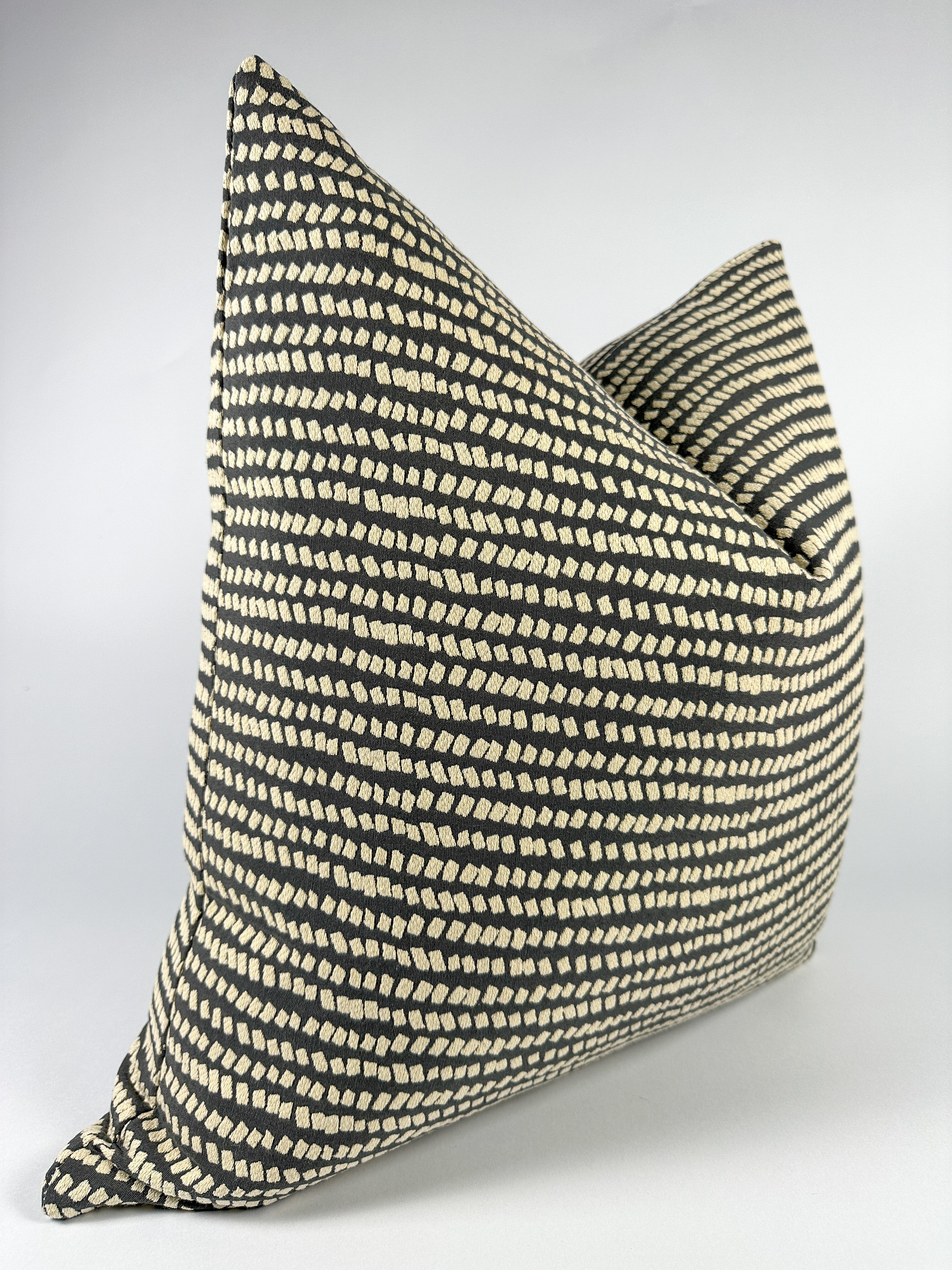 Minimalistic design that is dazzling without the extra Oohs and Aahs. This pillow is tasteful and stylish. Without trying hard it can be used to ground a design. The small dots is perfect for the front pillows in an accent chair, the middle pillow in a couch design, and/or anything in between.