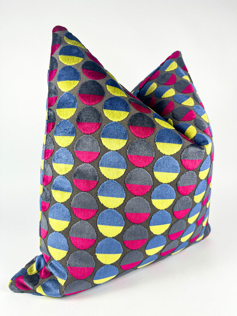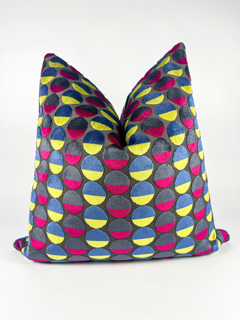 Add a pop of color to any room with our Tricolor Circles pillow cover! Featuring vibrant shades of pink, yellow, and blue, this cheery addition will brighten up any space. Made with high-quality materials, it's the perfect way to add a touch of personality and style to your home decor.