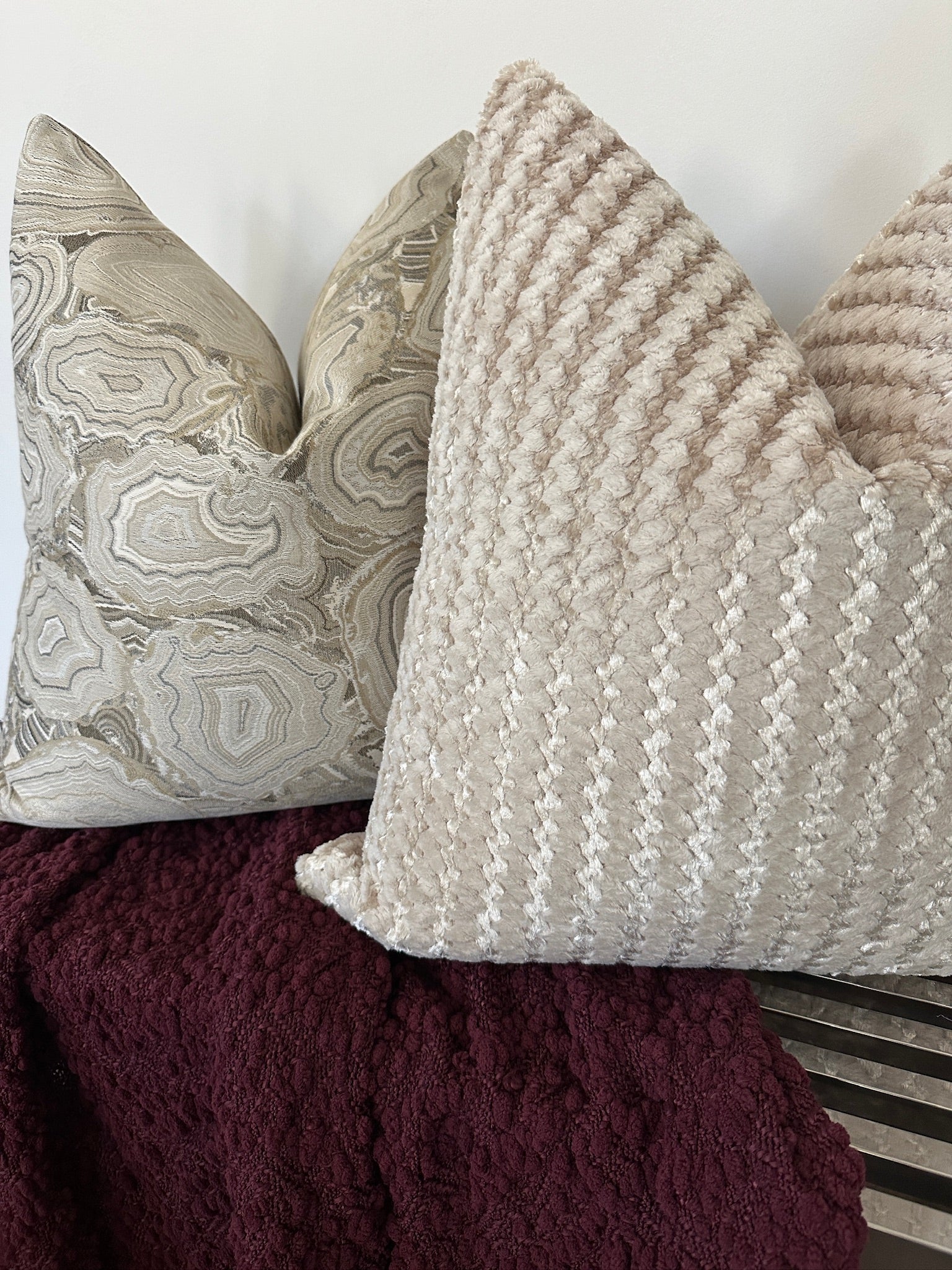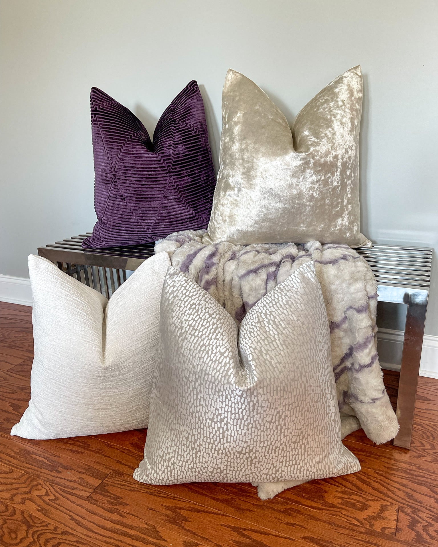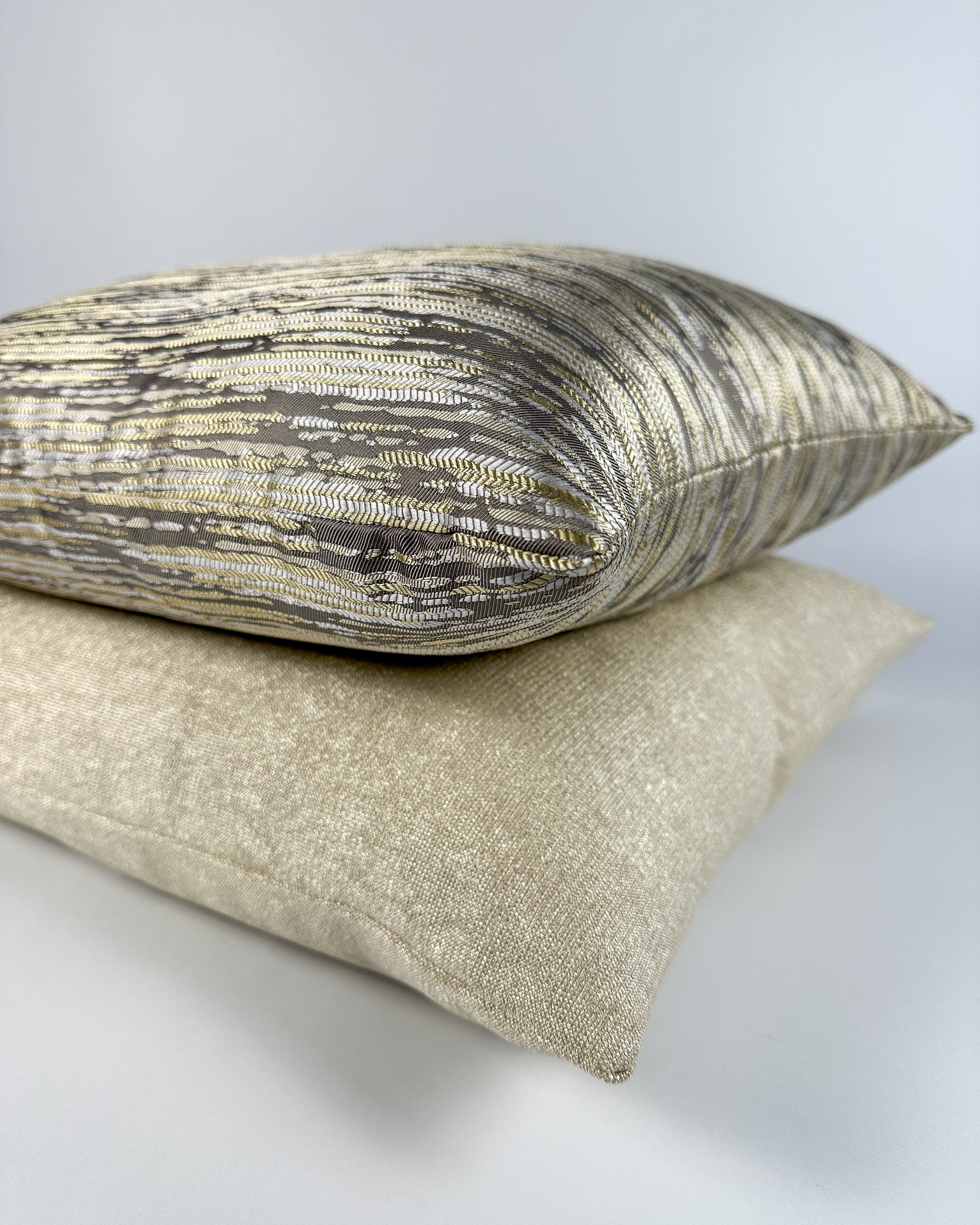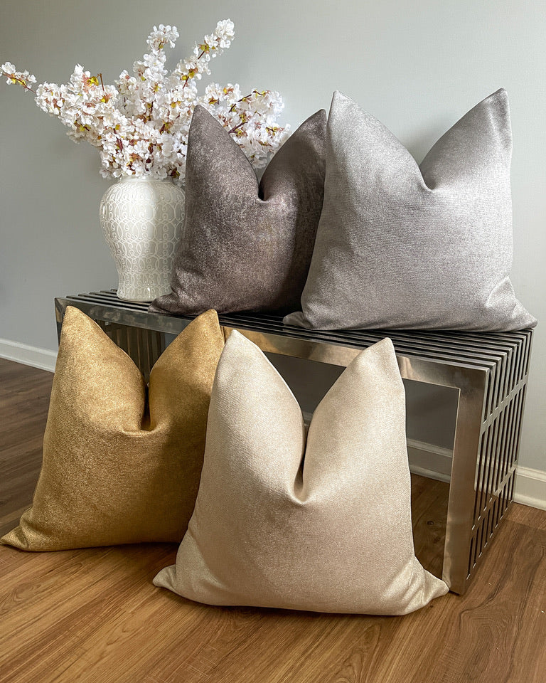 Designed for both homeowners and interior designers, many styles are available in quick-ship sizes, with same-day shipping on in-stock styles and fast lead times on custom options. Ideal for modern, glam, transitional, and elevated neutral interiors, these metallic pillow covers deliver polished luxury—without the wait.
