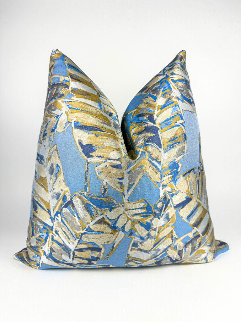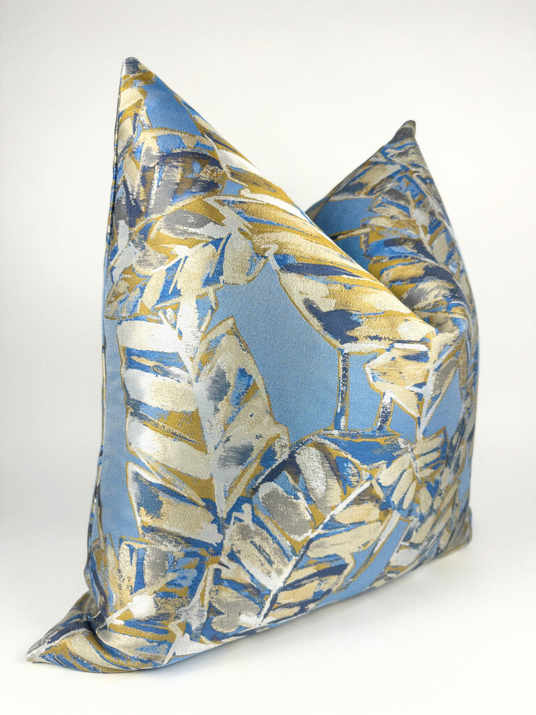 Blue Palm Leaves Pillow Cover
