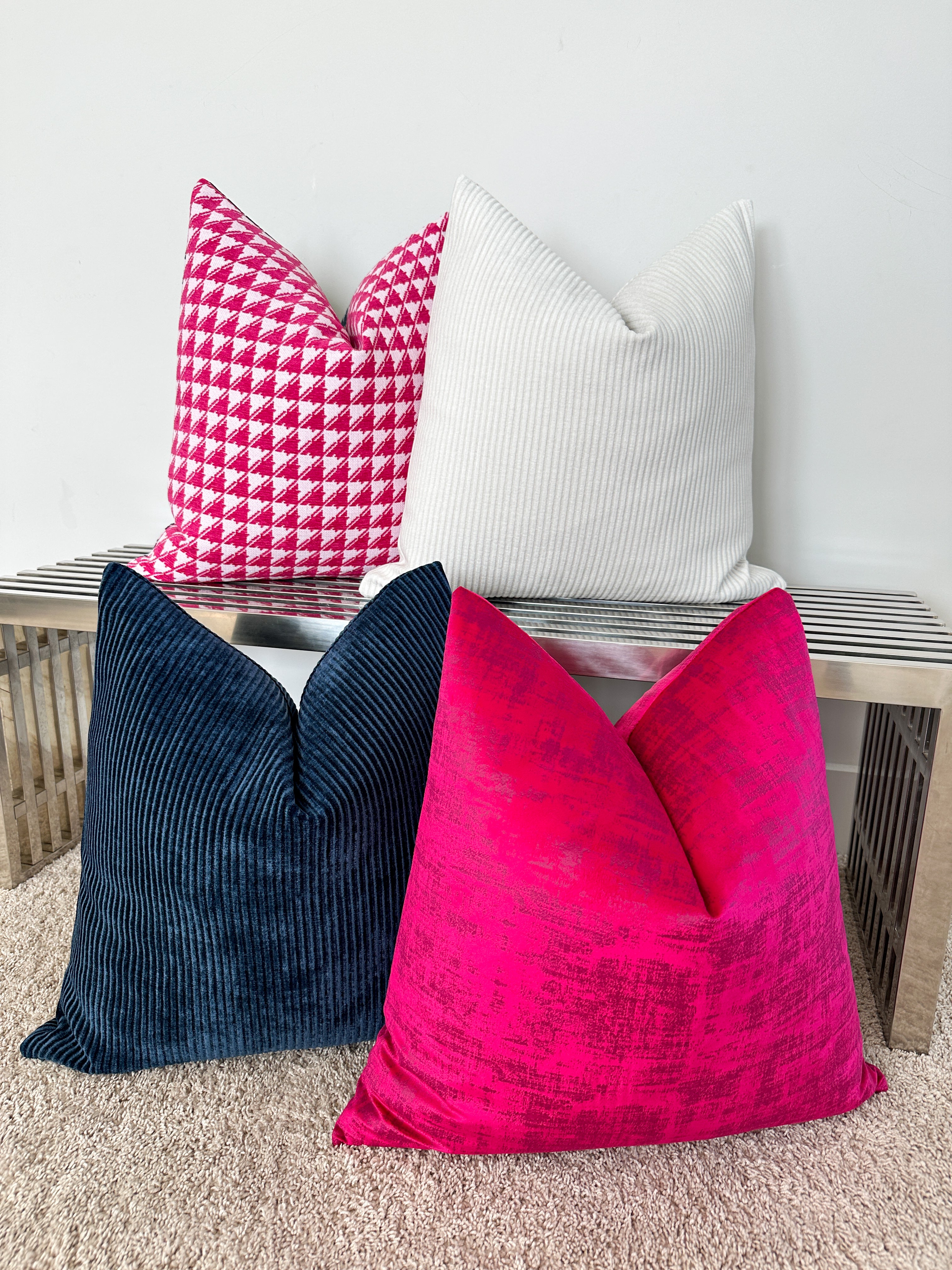 Discover our collection of luxury pillow cover styles, available in a wide range of sizes, colors, and premium fabrics—designed to make finding the perfect finishing touch effortless for any space. Our decorative throw pillow covers come in square, Euro, and lumbar sizes, including 20x20, 22x22, 24x24, 26x26 Euro, 12x18 lumbar, 14x24 lumbar, 14x30 lumbar, and 14x36 lumbar.