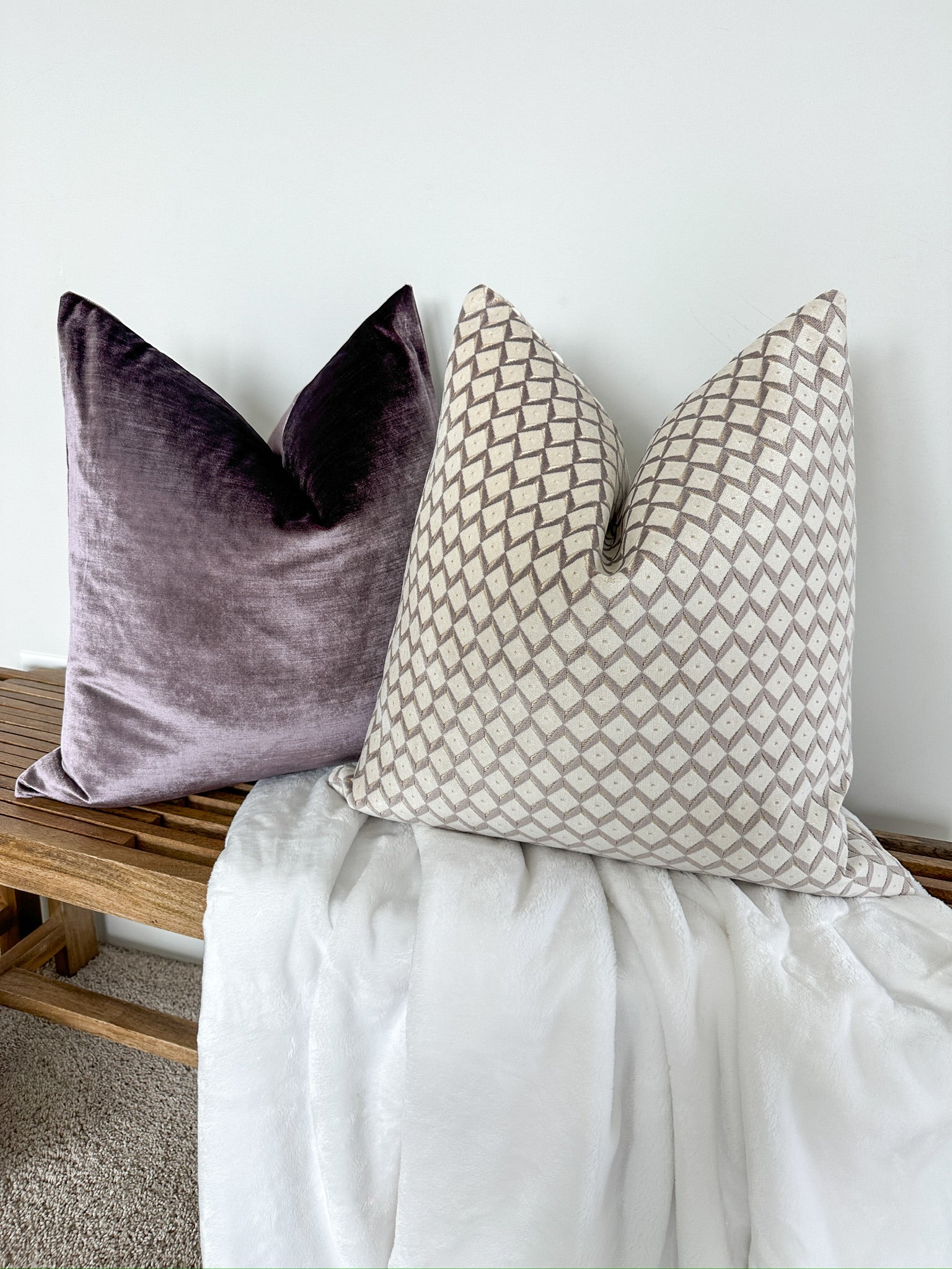 Lavender Ivory Diamonds Pillow Cover