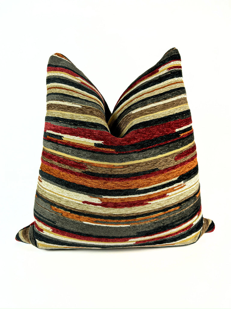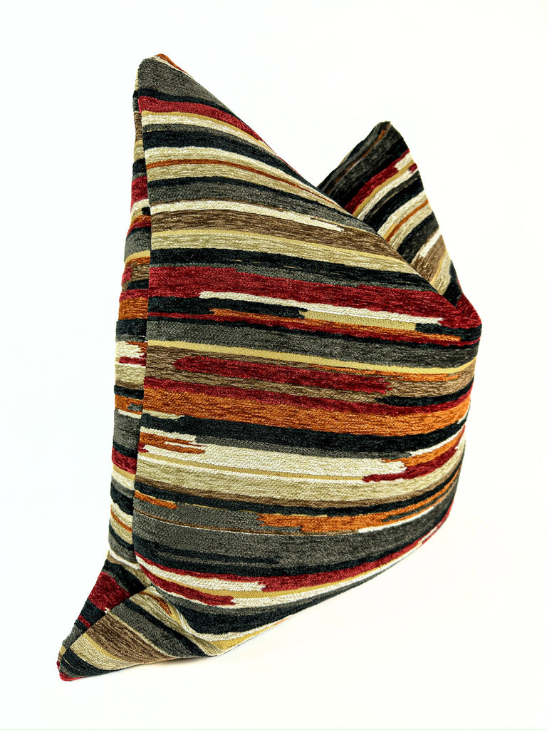 Bring the cozy essence of fall into your home with the Autumn Stripes Pillow Cover. Featuring warm rust, red, and espresso hues in a painterly stripe design, this cover adds a rich, earthy touch that instantly warms any room.