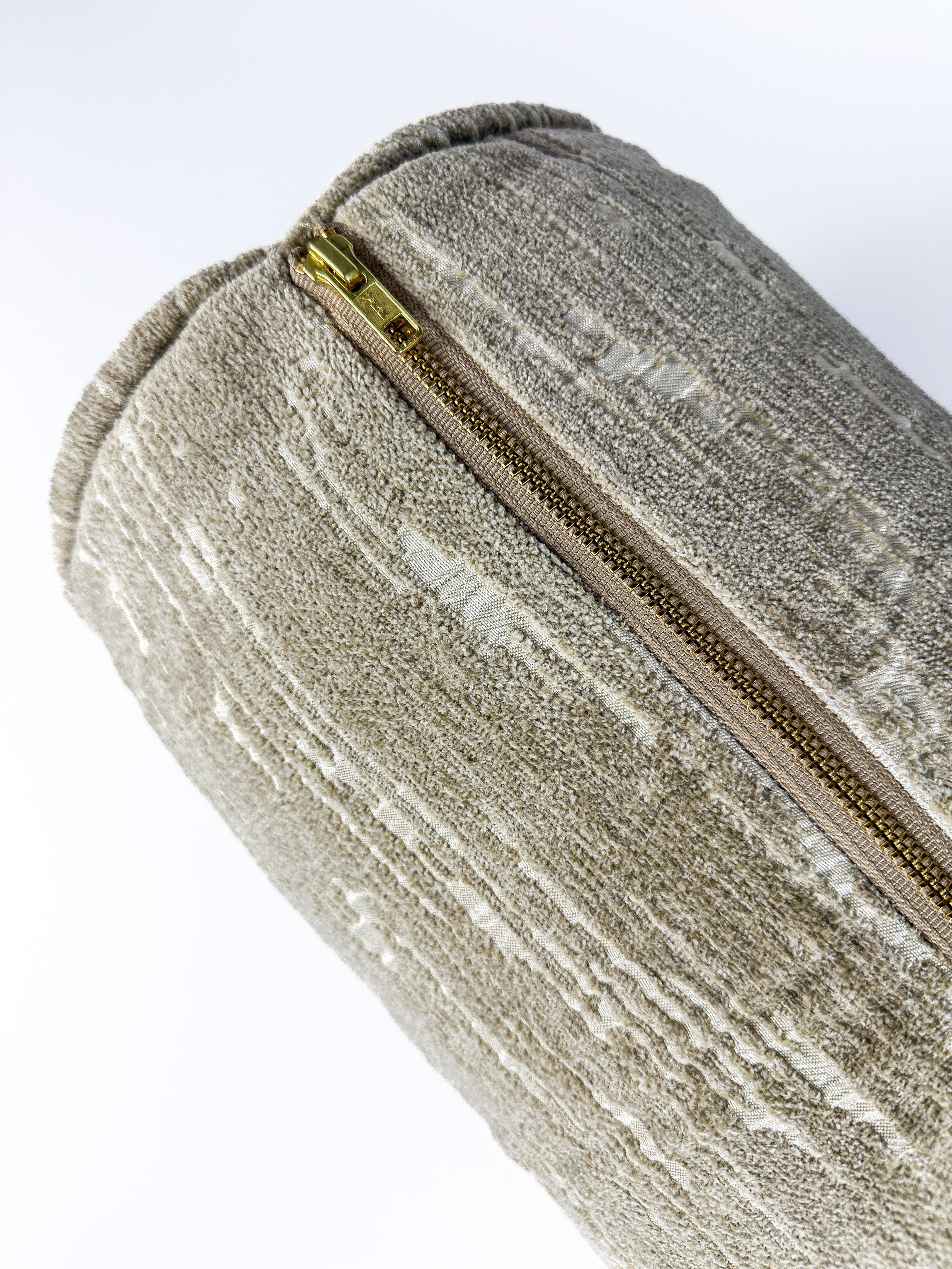 Elevate your space with the soft movement and warmth of our Golden Sand Gentle Ripple Bolster Pillow Cover. Featuring a subtle ripple-inspired texture in a warm sand tone, this bolster adds quiet dimension and an effortlessly refined finish. The neutral palette layers beautifully with patterned pillows and soft solids, making it an ideal accent for curated bedding and styled seating in modern and transitional interiors. Style it alone for understated elegance or pair it with contrasting textures for a collected, designer look.