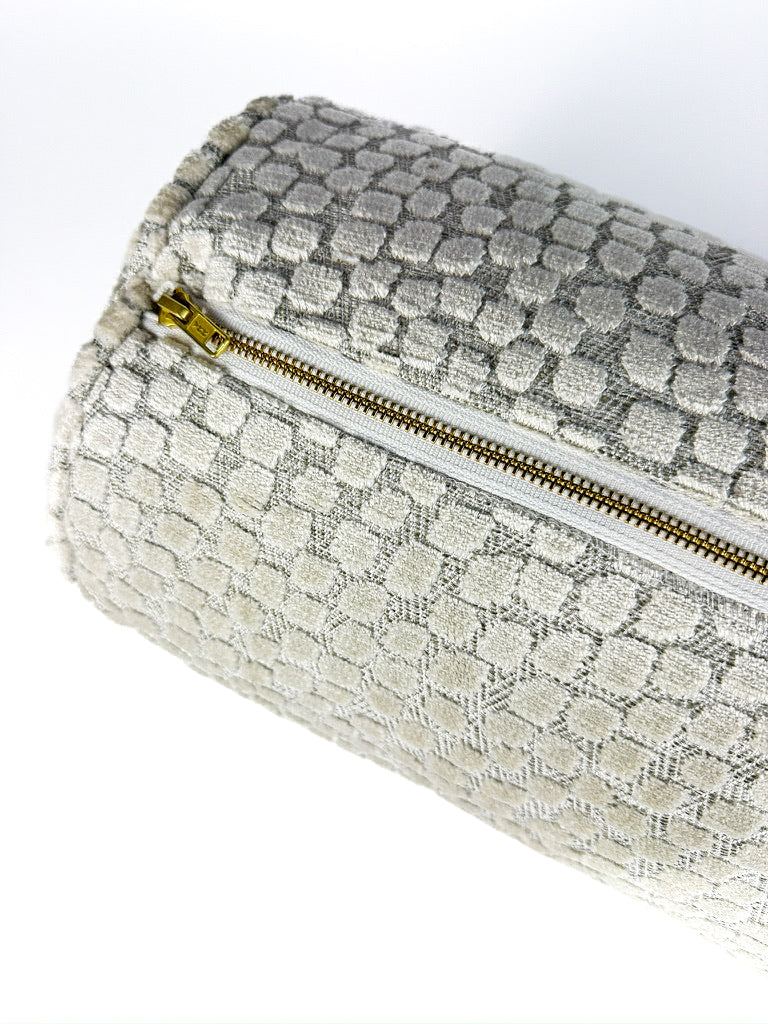 Elevate your space with the soft, textural elegance of our Ivory Snow Dots Bolster Pillow Cover. Featuring a delicate raised dot pattern in a creamy ivory hue, this bolster adds subtle dimension and quiet luxury to layered bedding and styled seating. The tactile surface catches the light beautifully, creating a cozy yet elevated accent that pairs effortlessly with neutrals, velvets, and organic textures. Style it alone for a serene statement or layer with patterned pillows for a collected, designer look.